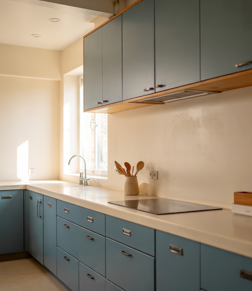 Blue cabinetry is still on the rise, but especially when it’s warmed up with wooden accents and softened with thoughtful design ideas. Paired with a touch of luxury finish, a soft blue creates a kitchen that feels polished yet comforting. Budget/price angle: painting only the lower cabinets blue while keeping uppers neutral delivers the look for far less than a full-color overhaul.
