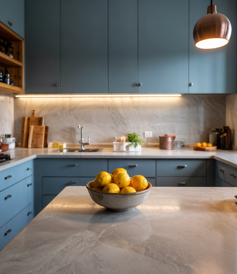 Adding a bold accent cabinet or backsplash is trending again, especially tones like deep blue paired with subtle, simple Indian textures. A modern luxury kitchen design emerges when these hues sit beside warm wood, quiet stone, and matte fixtures. Micro anecdote: one homeowner told me their navy pantry wall became “the happiest surprise” in their remodel—a small risk that now anchors the whole space.