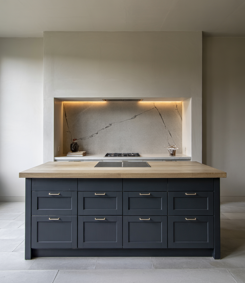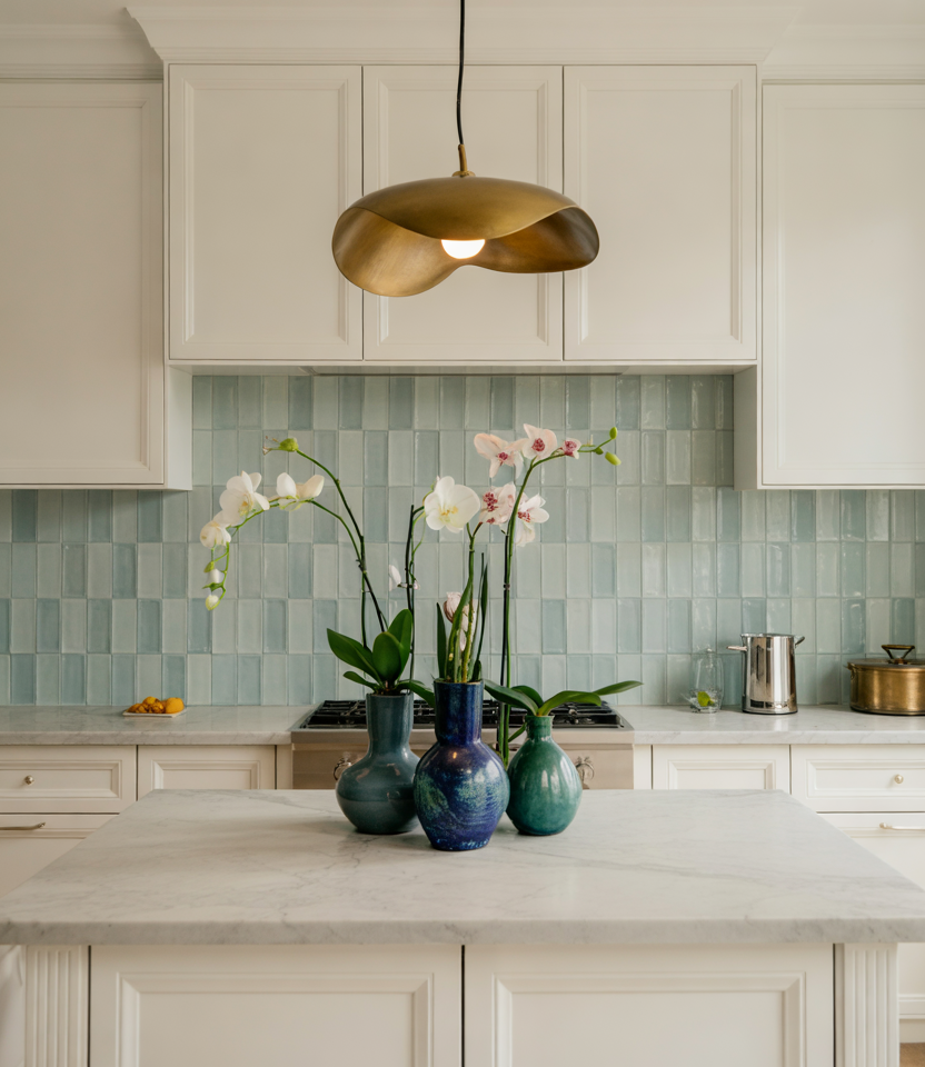 Even small kitchens can host an island when designed with care. Incorporating small space planning, a hint of luxury finish, and accents inspired by design ideas creates a centerpiece that feels intentional. A splash of blue or stone adds elegance without overwhelming proportions. American lifestyle context: compact islands are especially popular in condos where entertaining and cooking overlap, serving as both prep hub and social perch.
