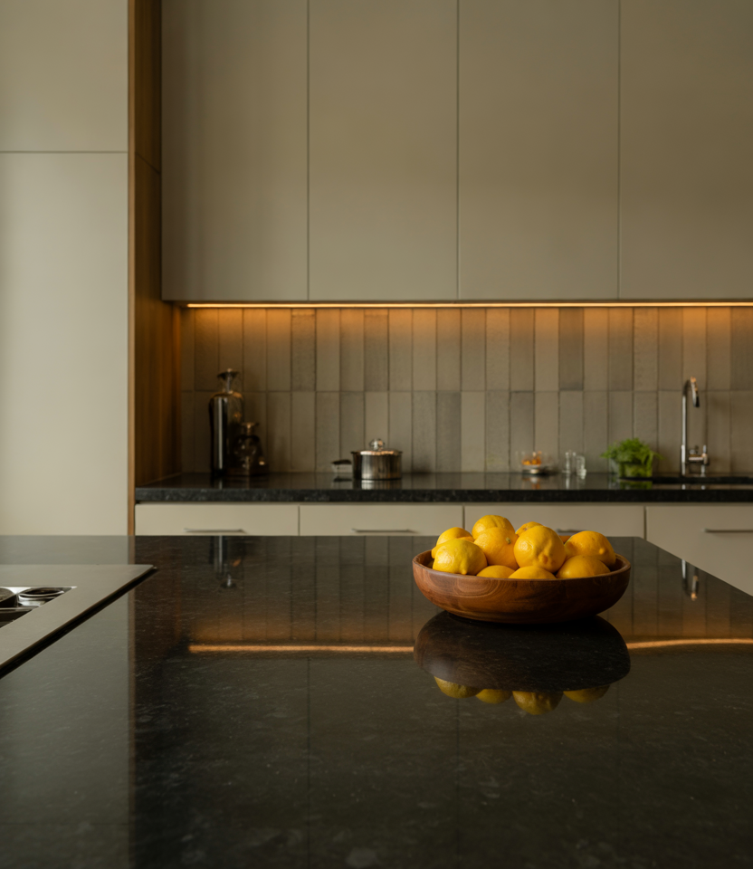 For those short on square footage, thoughtful choices—like emphasizing small space solutions and mixing subtle luxury finishes—matter. A polished black granite top can ground the room while still keeping it visually light and approachable. Expert-style commentary: Small kitchens benefit from strong focal materials; one signature surface instantly lifts the room and reduces the need for decorative clutter.