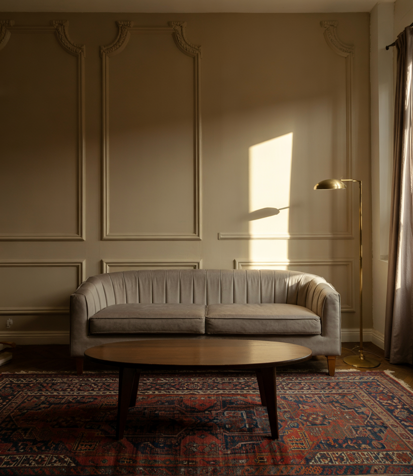 Mixing a streamlined lounge chair with a traditional side table builds contrast that feels timeless. This pairing blends retro charm with vintage curves and a hint of classic refinement, creating a corner that feels curated rather than themed. It’s a simple way to add depth without overwhelming a modern living room.