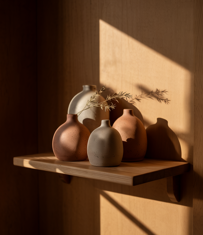 Creating a sculptural display using ceramics or hand-shaped objects brings subtle artistry to a room. A mix of organic forms and moody tones gives shelves and side tables a grounded yet expressive feel. It’s an easy way to update your style without buying big furniture pieces.