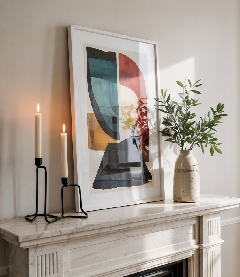 Pairing a timeless fireplace mantel with clean-lined artwork creates striking balance. Blending classic architecture with contemporary pieces keeps a room anchored but fresh. This approach is ideal for homeowners wanting tradition without leaning into overly formal styling.