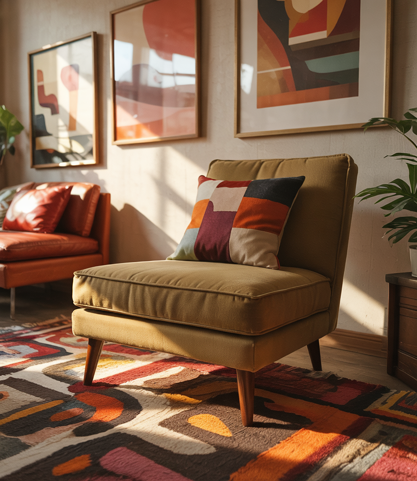 Vibrant pillows, rugs, and art instantly energize a room, especially when nodding to colorful mid-century palettes and vintage influences. Pops of mustard, teal, or coral add personality without requiring full redecorating. It’s a playful update that suits both small and large living rooms.