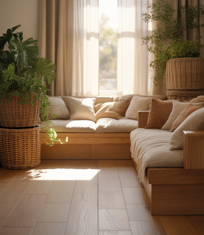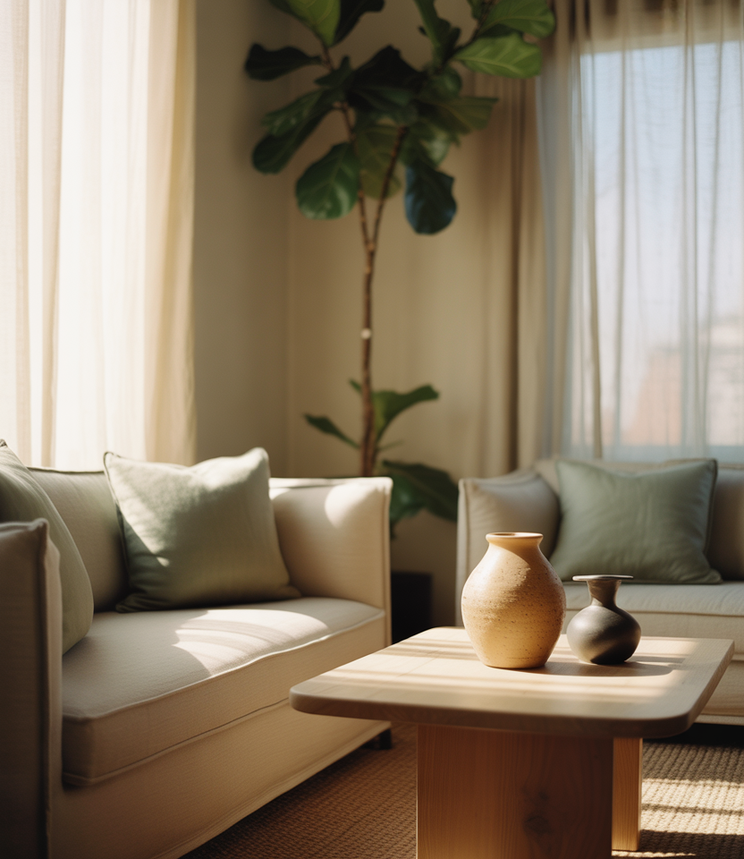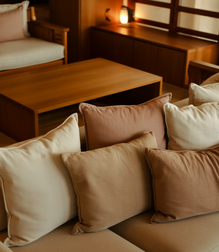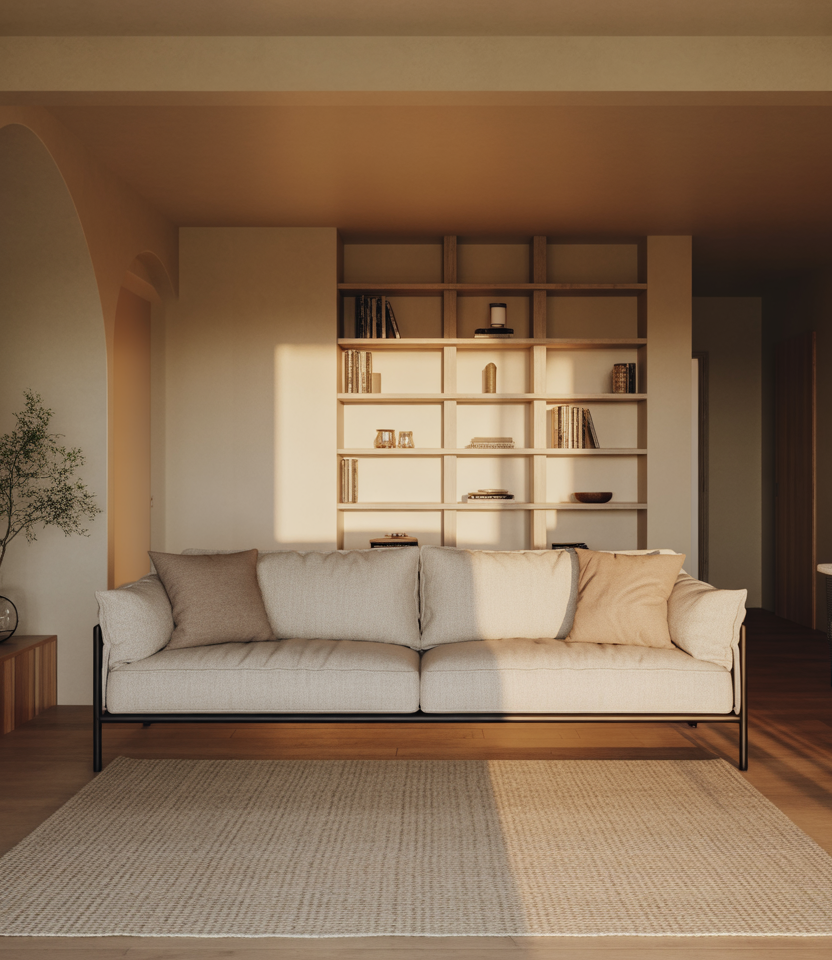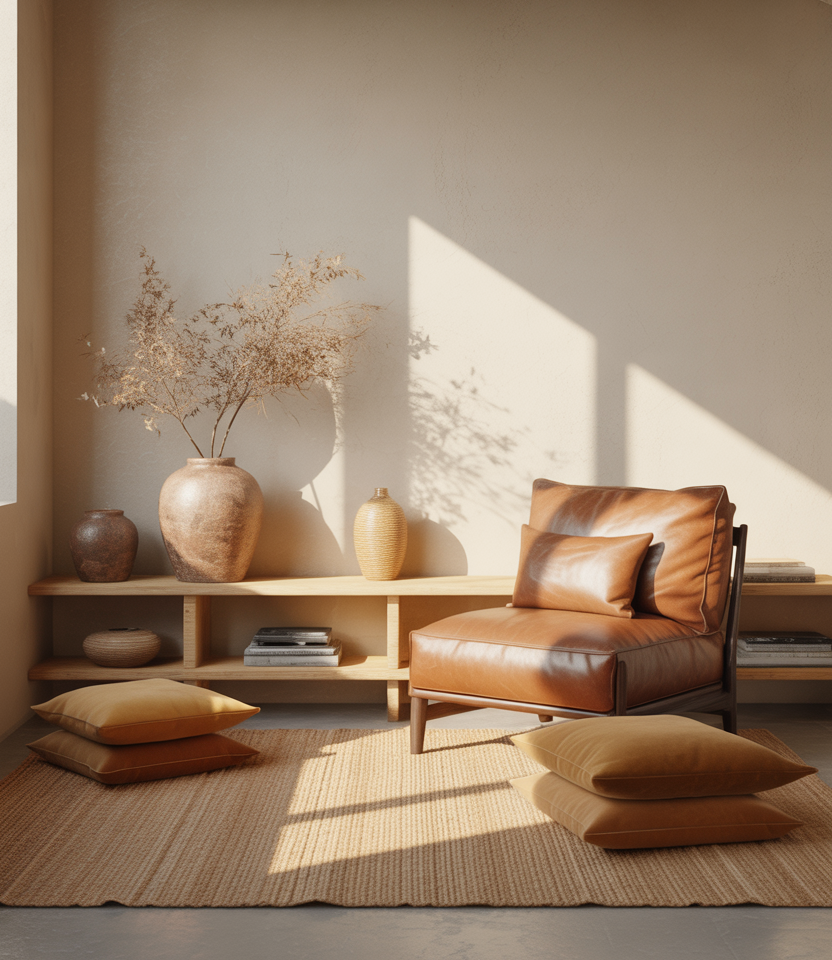 Low-profile sofas and coffee tables create a spacious feeling, especially in smaller rooms. This grounded aesthetic pairs naturally with understated neutrals, adding a sense of ease. Subtle rug textures, light earthy tones, and muted inspiration décor round out the serene look.