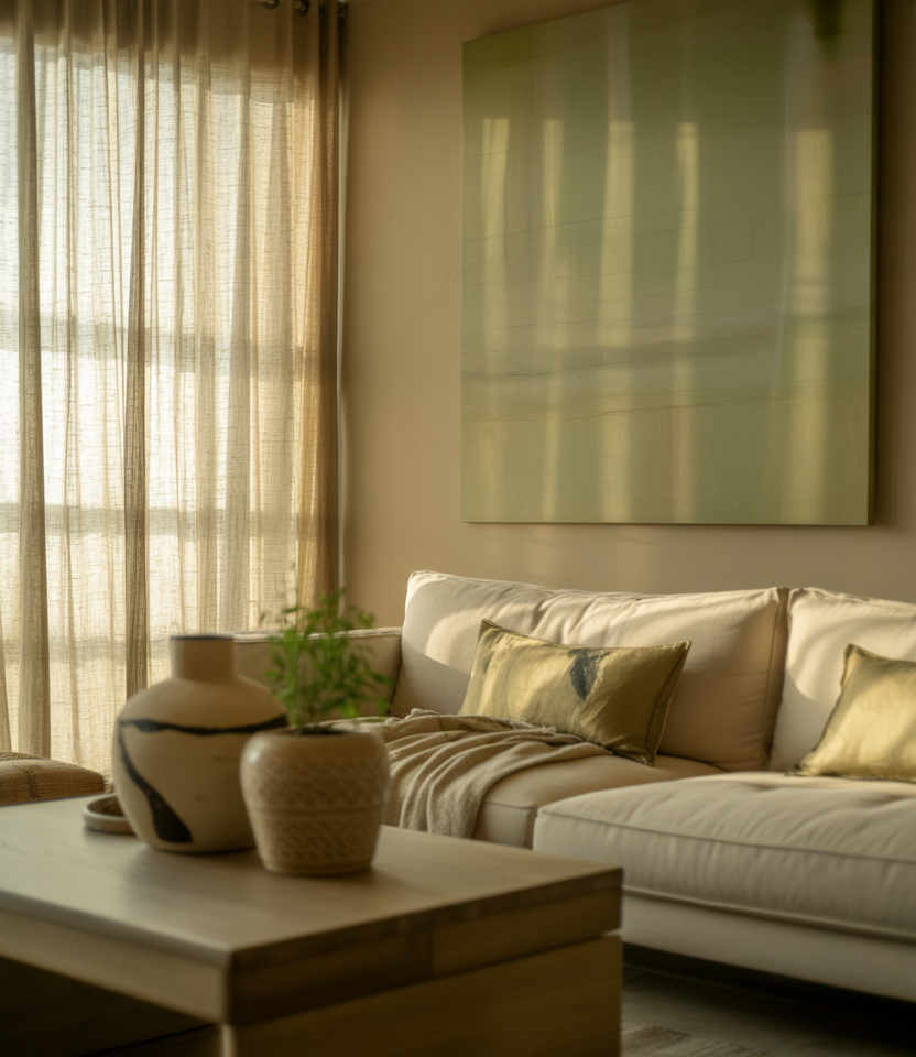 A mostly neutral living room becomes more dynamic when one subtle accent draws the eye. A muted artwork, tinted vase, or patterned cushion can introduce interest without clutter. Soft pops of color blend beautifully with warm earth tones and a hint of coastal calm, creating a breezy finish.