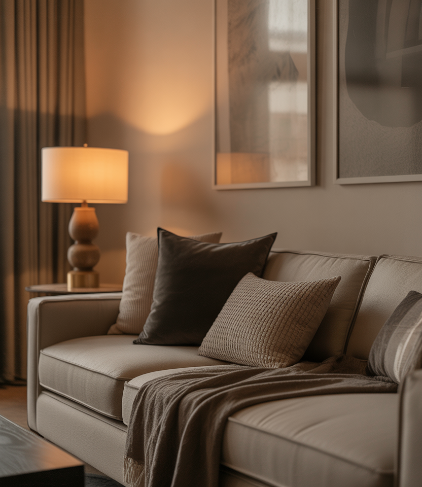 Lighting is the secret ingredient in a successful neutral palette. Warm bulbs and layered lamps make the tones feel rich and inviting. Blending soft glows with cozy accents, quiet decor in earth tones, and hints of inspirational styling adds a soothing rhythm to the space.