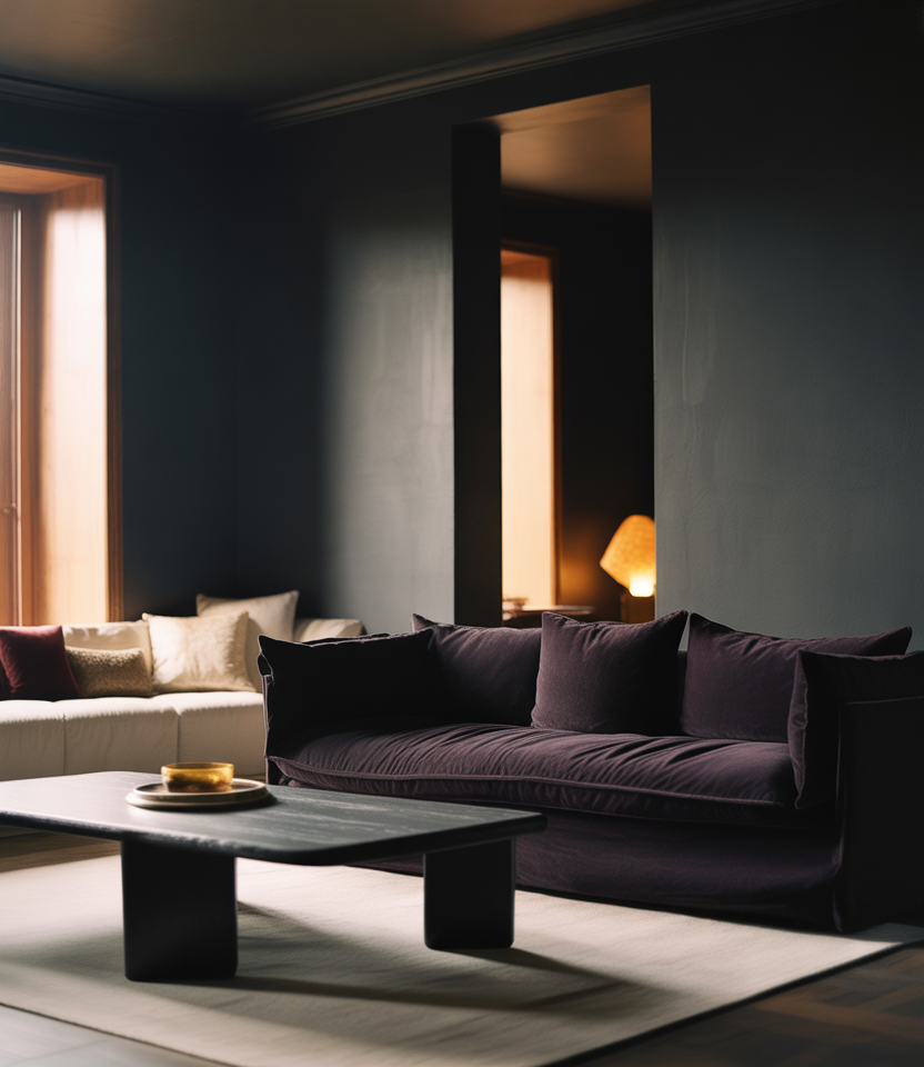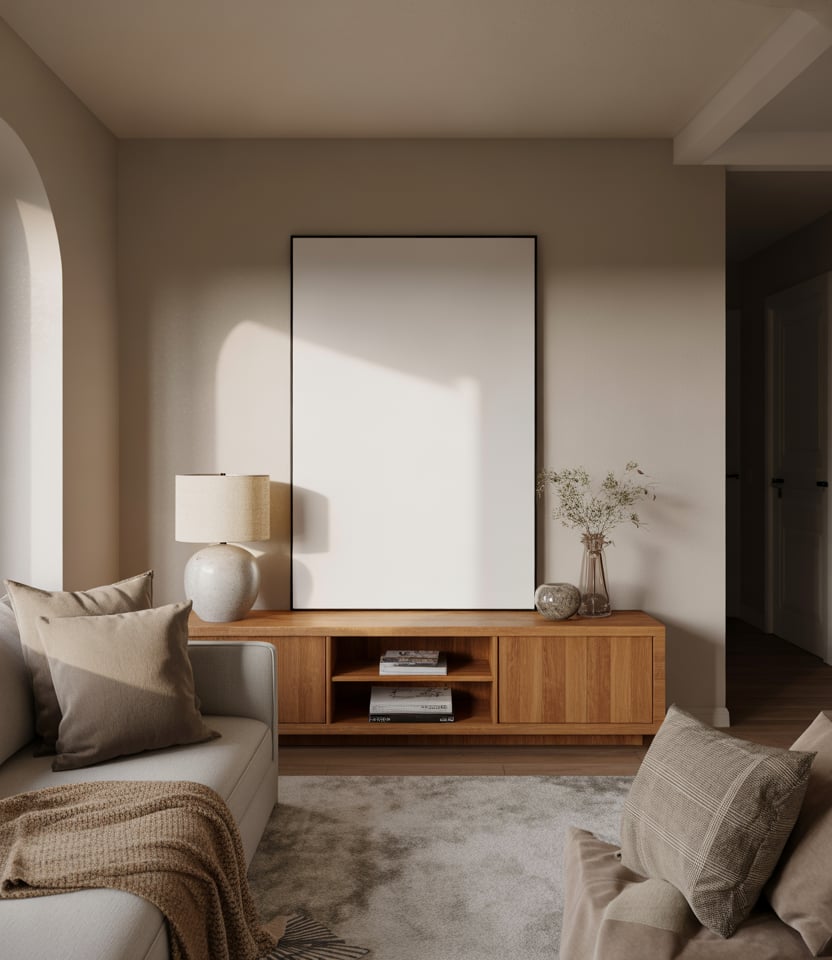 Dark anchors—like a charcoal media console or espresso sideboard—can keep a neutral room from feeling too airy. They introduce grounding structure. Pairing these elements with soft dark hues, delicate black accents, and warm earthy touches creates a balanced, modern look.