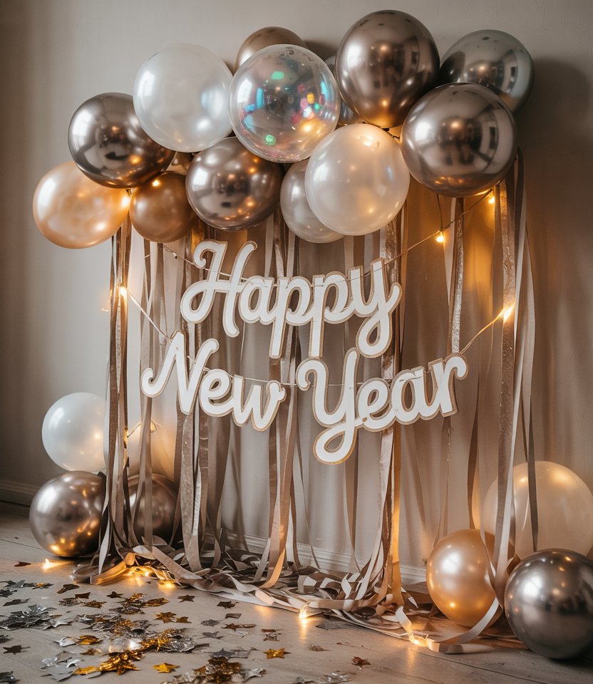 In the Instagram era, a photo backdrop is a must-have for new year’s decorations. Use metallic streamers, balloons, or a curtain of fairy lights to create an easy spot for pictures. This Ideas diy simple setup adds a memorable highlight for guests, making your Ideas home 2025 celebration unforgettable. Experts from Pinterest trends note that photo corners are now staples at every party.