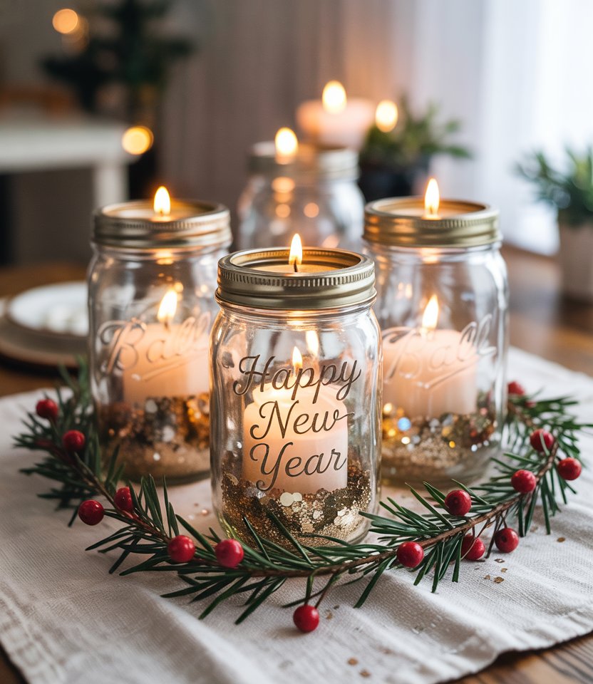 Your table is the heart of every New Year’s dinner. Create homemade centerpieces with pine branches, candles, and gold spray-painted jars for an affordable yet stunning look. This diy arrangement feels warm and personal while keeping the style elevated. Lifestyle bloggers often suggest adding seasonal fruits like pomegranates for color. It’s an Ideas home 2025 detail that adds a personal touch to celebrations.