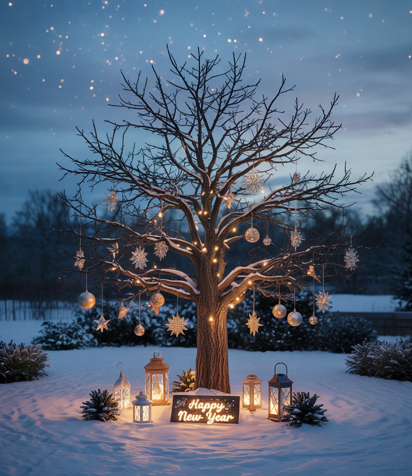 If you’re decorating outdoor, turn a bare tree into a shining centerpiece. Wrap it with fairy lights, hang metallic ornaments, and place glowing lanterns at the base. This Ideas diy simple project makes your yard feel magical for guests arriving at your home. Garden design blogs note that outdoor lighting is one of the most memorable touches during winter holidays.