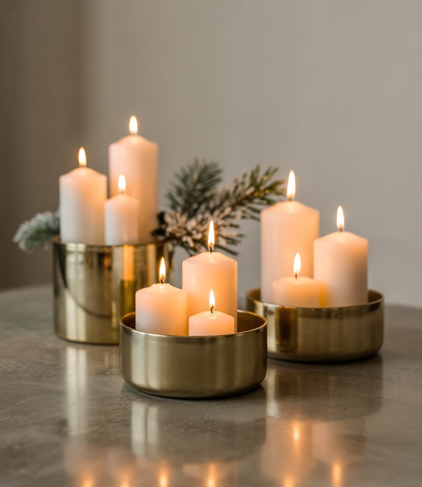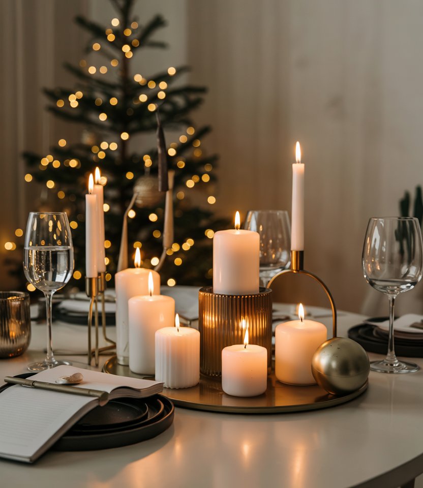A minimalist approach to new year’s decorations creates an elegant and calm mood. Group white candles of different heights on trays or metallic stands to create soft light in your home. This idea pairs well with modern interiors and is ideal if you prefer Ideas diy simple rather than flashy décor. The subtle glow is especially welcoming for winter nights and can turn a small Ideas home 2025 gathering into something intimate.