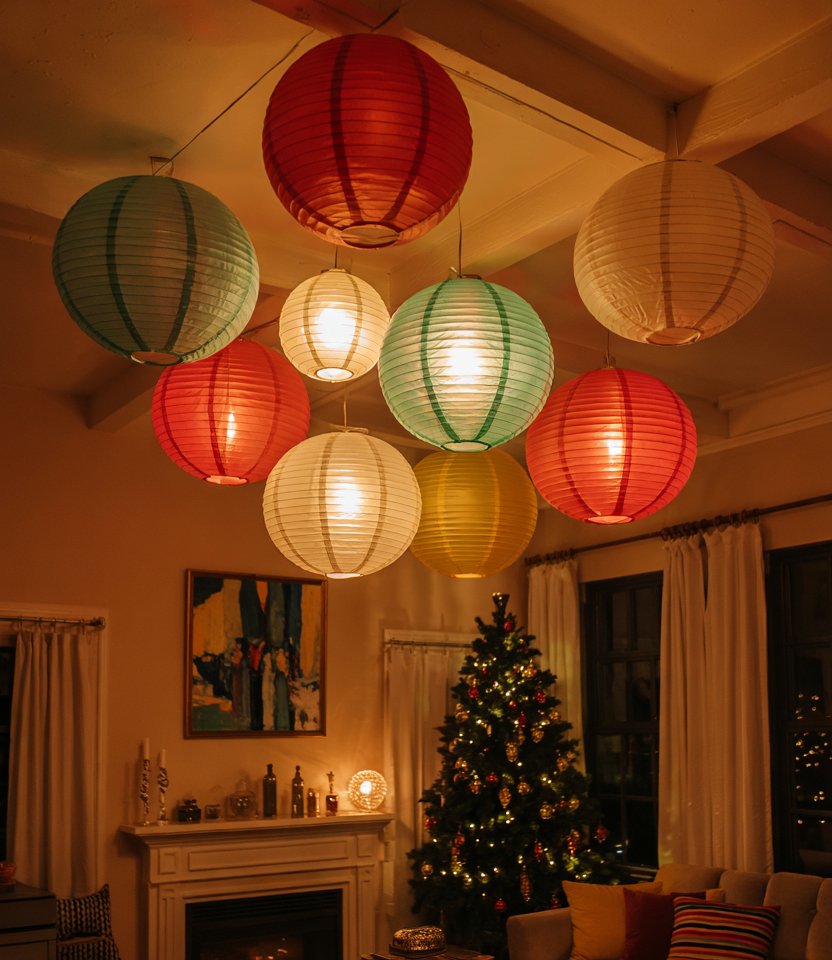 Clusters of paper lanterns in gold, silver, or bold colors create a striking focal point in any room. This Ideas diy simple décor is budget-friendly and works well for both indoor and outdoor parties. Add LED lights inside for glow and arrange them at different heights for a dynamic look. Designers call this one of the most versatile ideas home 2025 because it suits both minimalist and bold styles.