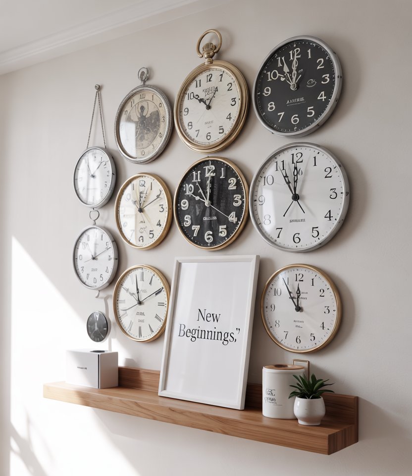 Clocks symbolize countdowns, making them perfect new year’s decorations. A wall styled with different vintage or modern clocks feels both playful and symbolic. This minimalist Ideas home 2025 approach works as a conversation starter and reminds everyone of the midnight moment. Many design editors suggest mixing thrifted and new clocks for character.