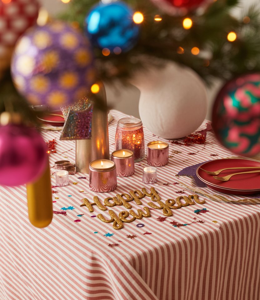 For a playful twist, swap neutral linens for red and white striped runners or napkins. It’s a nod to classic holiday vibes but reimagined for New Year’s. Style expert Sabrina Soto suggests mixing bold patterns with metallic accents for balance. Add simple diy touches like painted jars with white candles to make it approachable yet striking. This setup works well for both adult dinners and family-friendly celebrations with kids.