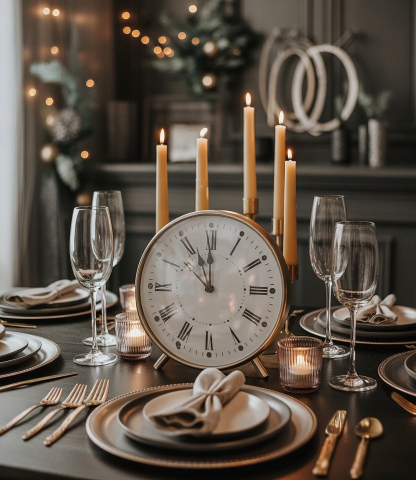 For a thematic setup, decorate your table with vintage or DIY clock faces set to midnight. Use paper printouts for an easy diy option or real thrifted clocks for authenticity. This symbolic detail ties directly to the countdown, making the table both decorative and meaningful. Interior experts love using time motifs during New Year’s because it connects décor with the spirit of the celebration.