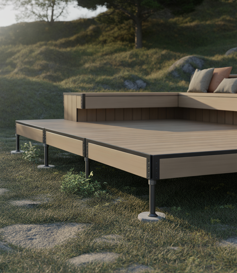 Creating a raised deck solves grading issues and maximizes backyards with slopes or dips. Homeowners working on a budget often use composite alternatives or DIY framing kits to build stable platforms that feel intentionally designed. This solution works well for small spaces, especially where ground-level patios collect moisture. A friend used a simple, modular system to build an elevated nook that finally felt usable after years of uneven terrain.