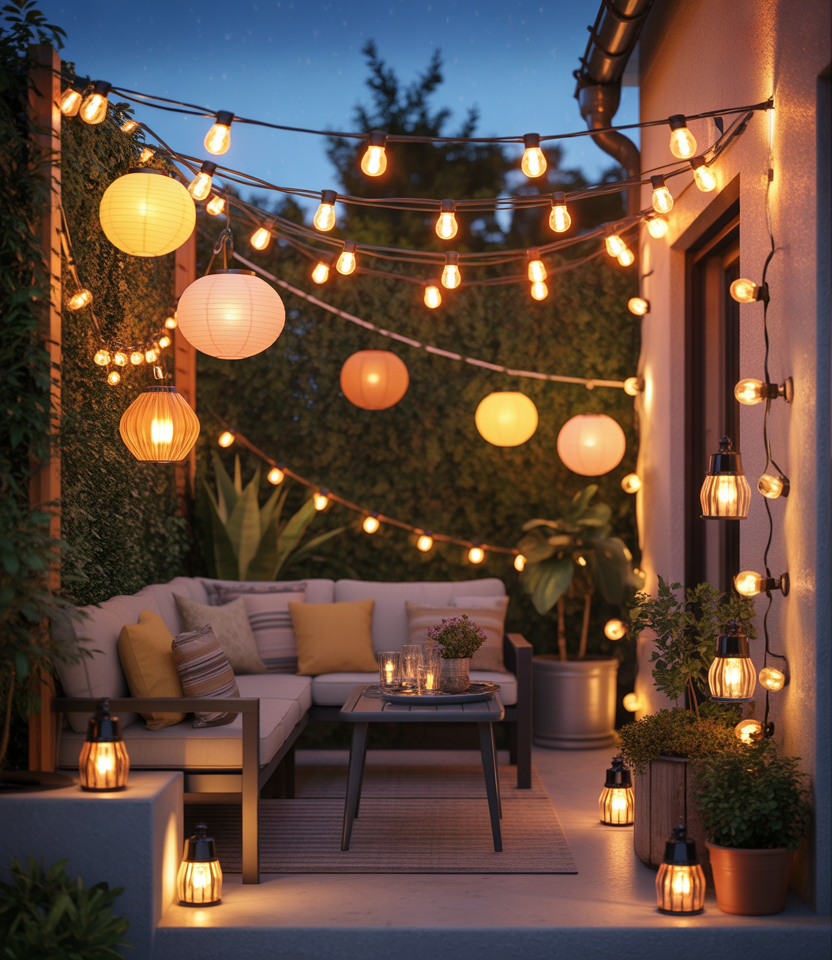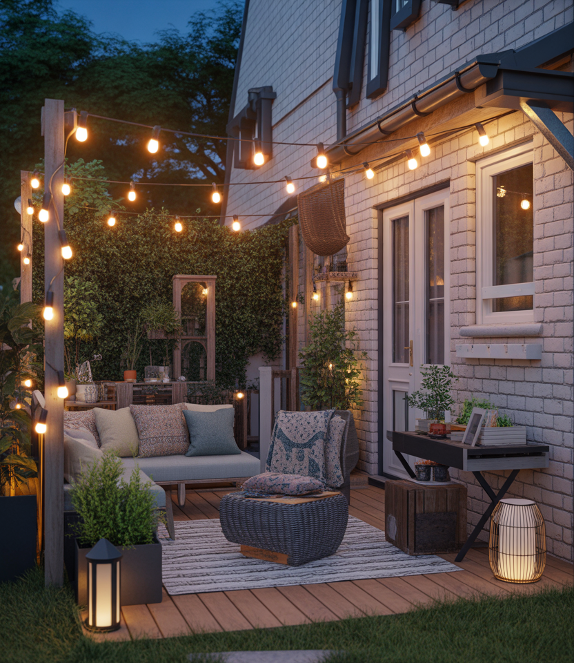 Strategic lighting transforms patios by extending usable hours and creating ambience. String lights, lanterns, and solar path fixtures work especially well for apartment terraces and tiny decks on a budget. Whether highlighting a fireplace or illuminating greenery, warm light enhances mood and visibility. I once saw a neighbor layer globe lights and low lanterns, turning their modest patio into an intimate nighttime oasis that felt unexpectedly high-end.