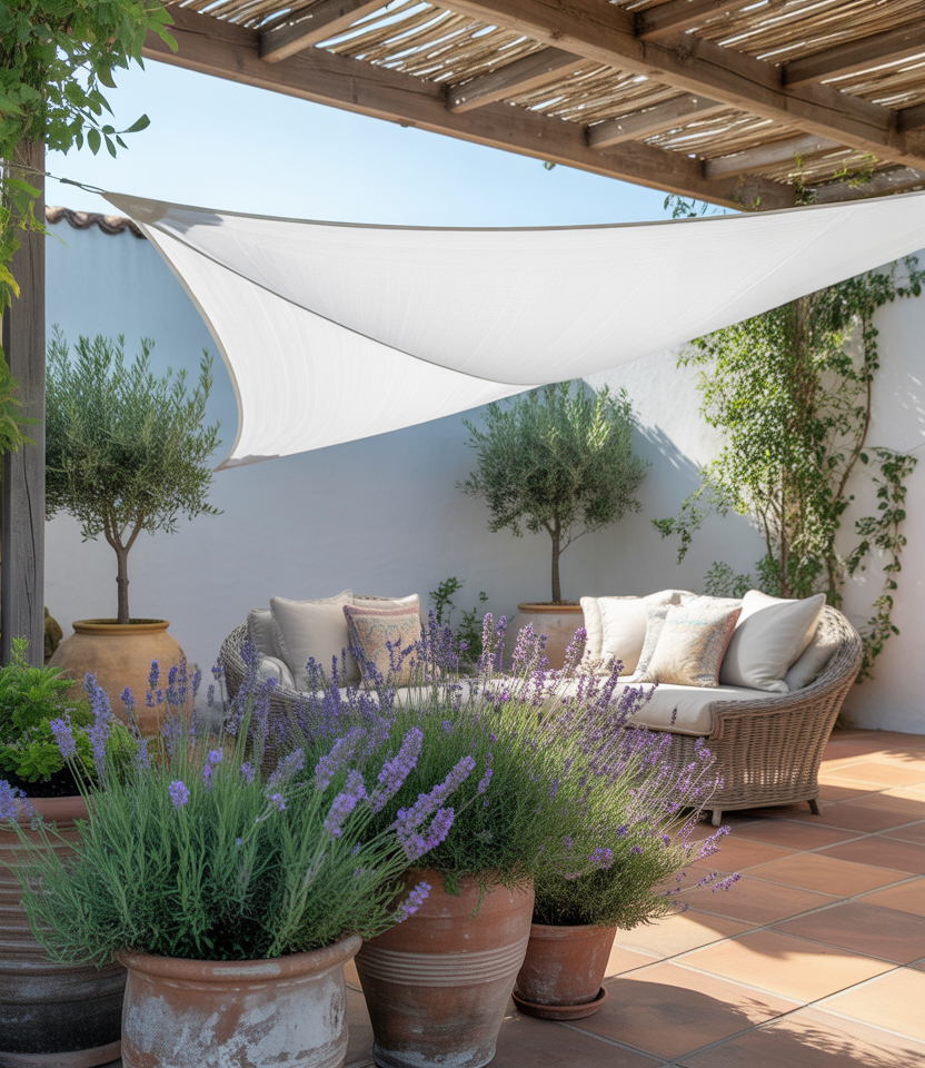 Garden-filled patios with targeted shading suit warm regions and pair beautifully with Mediterranean plant selections like olives or lavender. Shade sails, pergolas, and vines make these spaces livable without major investment. For backyards on a budget, homeowners often combine container gardens with breathable fabric canopies. I once spent an afternoon under a vine-covered pergola that felt ten degrees cooler than the yard around it.