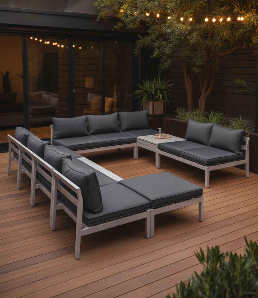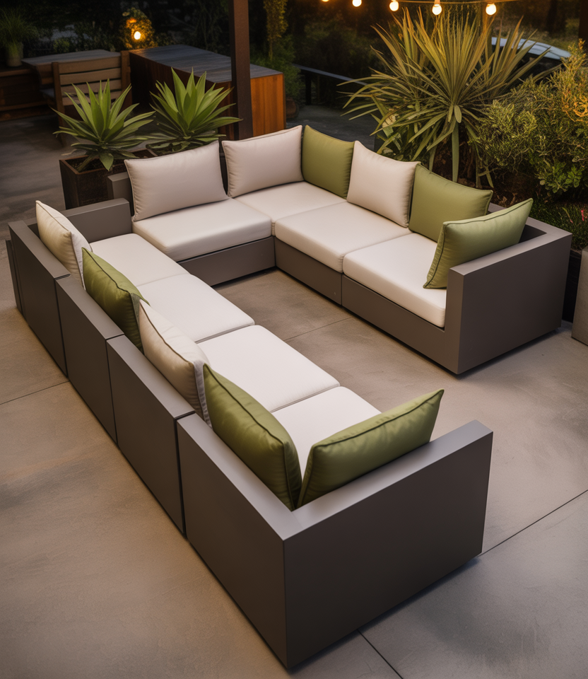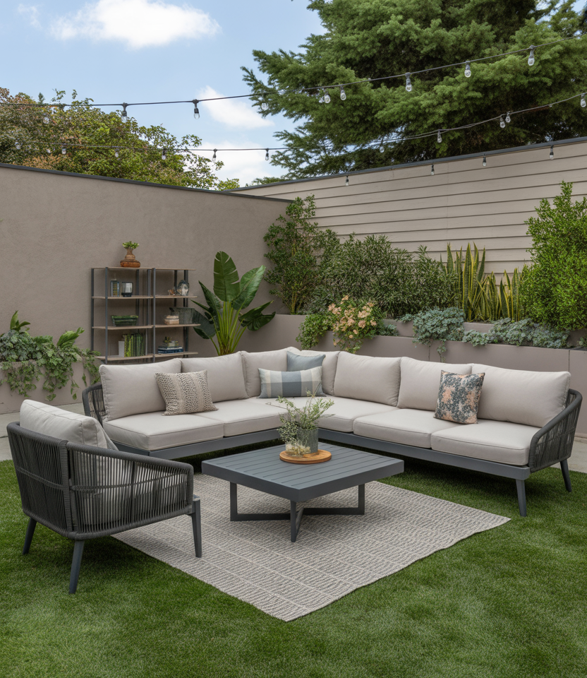 Modular sectionals allow patios of all sizes—from tiny balconies to large backyards—to feel intentionally arranged. Homeowners working on a budget love that each piece can shift to fit gatherings, movie nights, or quiet mornings. This approach suits simple modern tastes and works especially well in outdoor patio ideas for small spaces, where reconfiguring seating maximizes comfort without heavy investment.