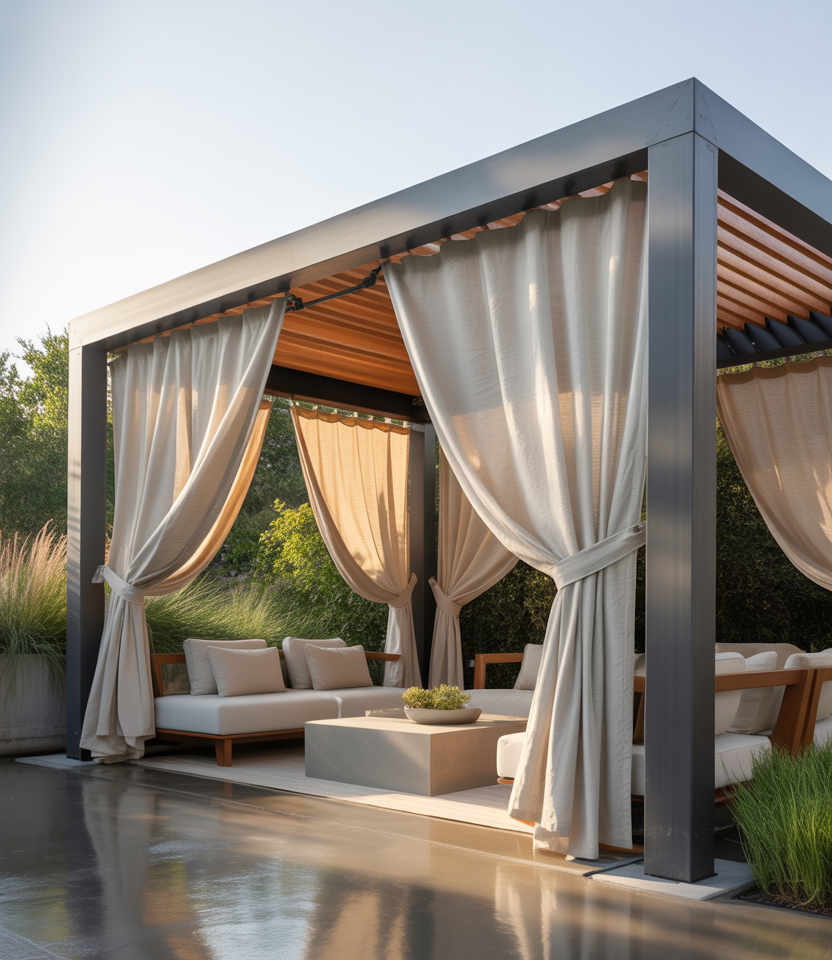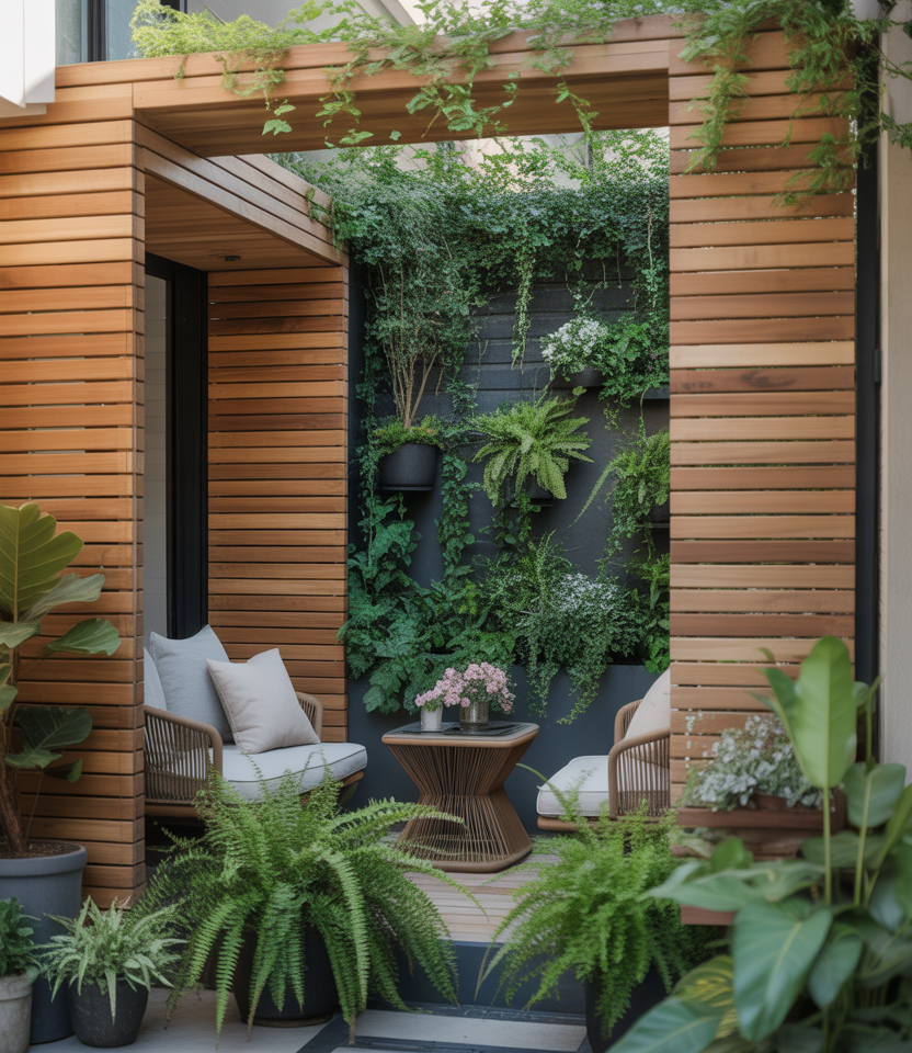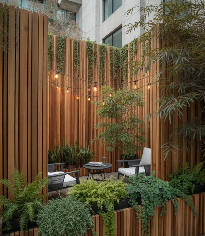 Modern privacy panels offer more than seclusion—they create architectural interest, especially in small spaces or apartment settings. Slatted wood, metal screens, or living walls can shield views while softening noise. A neighbor installed cedar panels around their townhome patio, transforming a previously exposed rectangle into an intimate oasis with a elevated feel.