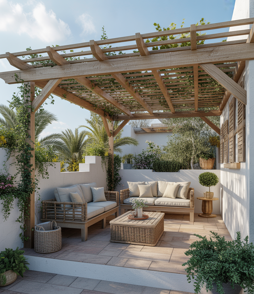 Pergolas draped in vines offer shade, romance, and structure. They suit rustic, Spanish-style, and Mediterranean concepts while remaining accessible for DIY-savvy homeowners on a budget. In backyards, pergolas help bridge garden and patio zones; in apartment courtyards, they add height and softness. A neighbor trained jasmine up their pergola, and the scent alone made evenings unforgettable.