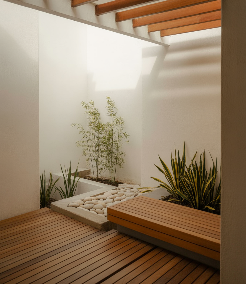 Drawing on Japanese garden cues, zen patios use smooth stone, warm wood, and minimalist lines to calm the environment. This fits small spaces, modern apartment terraces, or serene corners of large backyards. With cheap materials like gravel and DIY wood slats, homeowners recreate spa-like settings at home. A designer once told me that Zen patios work because they eliminate visual noise and invite stillness.