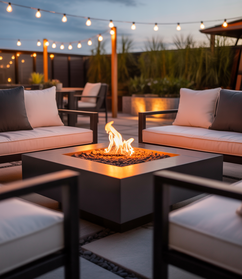 Warmth is trending, whether through a sleek gas unit or a classic fire pit. This idea suits everything from small spaces with fire pit setups to expansive backyards where people gather on cool nights. A friend once mentioned how adding a tabletop pit completely changed how often they used their patio—it encouraged conversation and extended evenings outdoors.