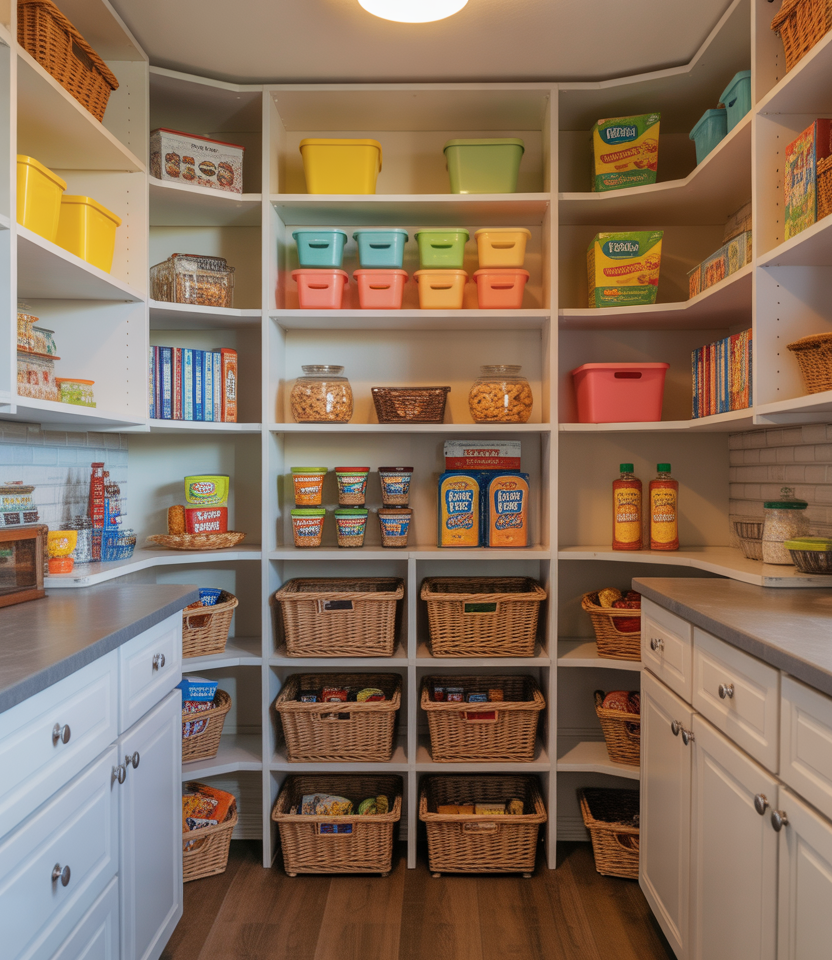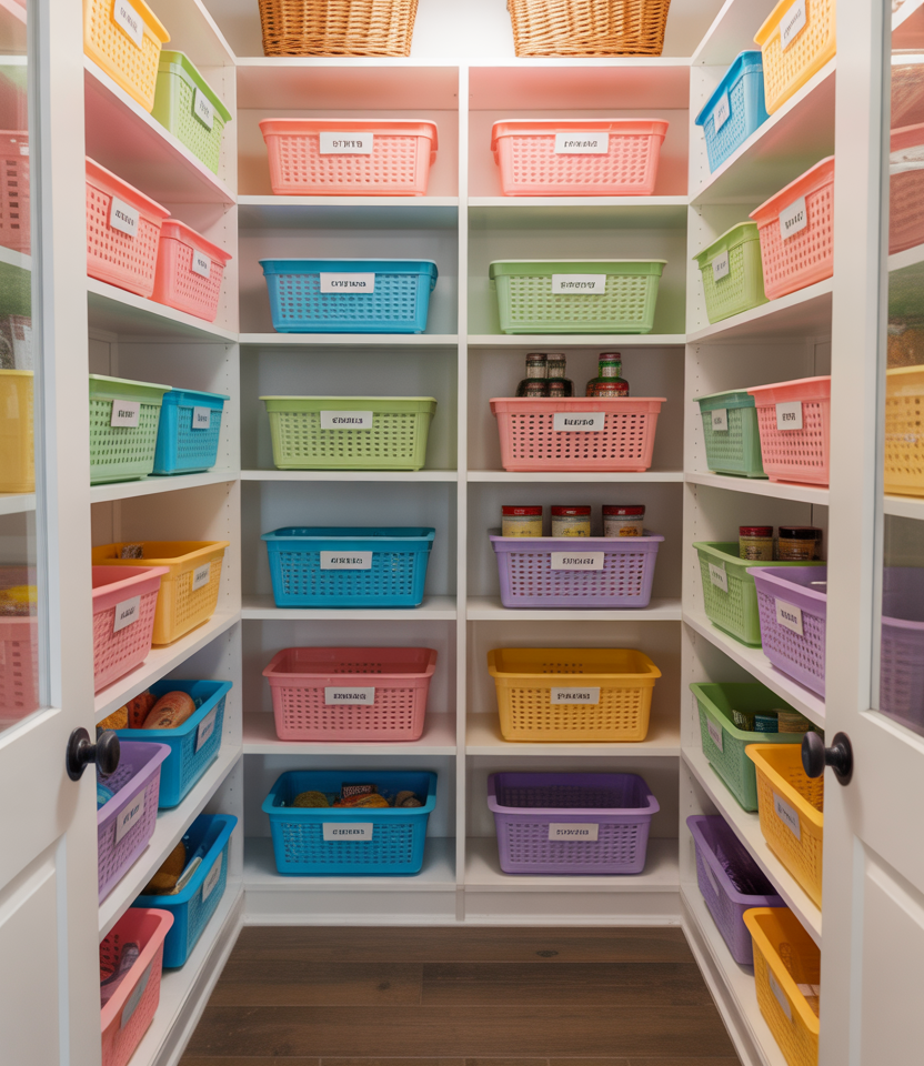 2. Basket-Based Zones for Cozy Pantry Warmth
