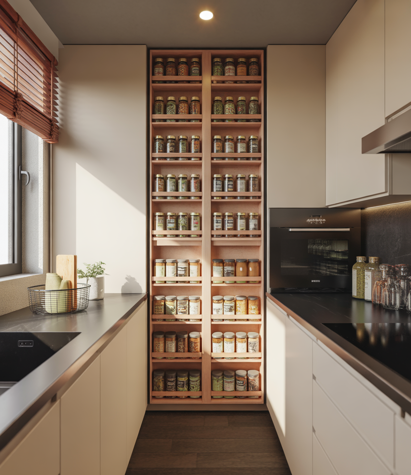 11. Hidden Pantry Nooks Behind Cabinet Panels
