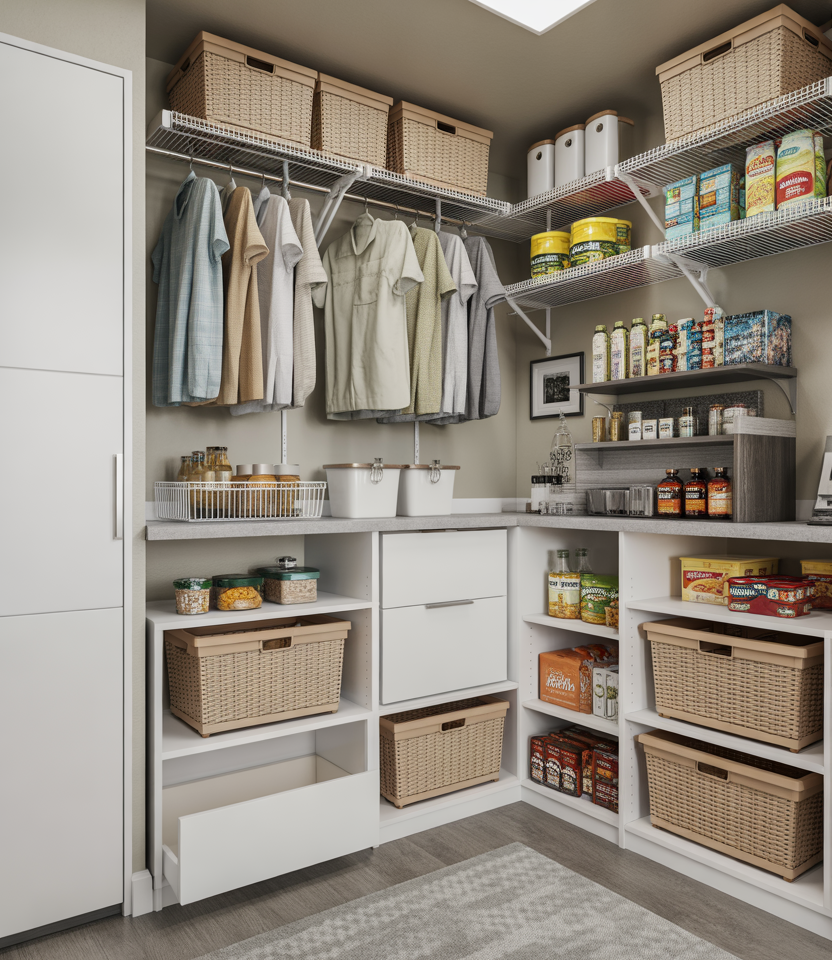 Transforming a basic closet into a functional pantry is perfect for ideas for small closets or ideas for small kitchens where square footage is tight. I once helped convert a friend’s hall bathroom closet into a chic pantry using Ikea shelves and simple wire shelf brackets. The result was surprisingly aesthetic, proving that with a bit of imagination, any tiny nook can handle major food storage.