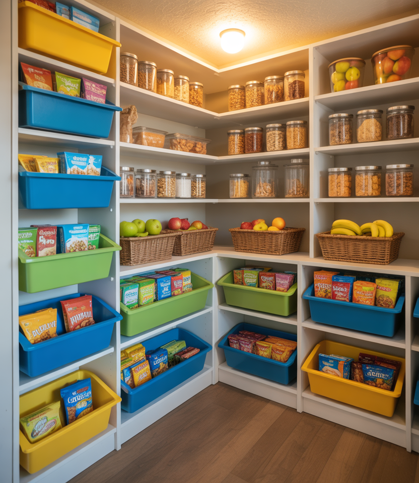 Color-coding brings instant clarity to any kitchen, walk-in, or small-space pantry. Using colored baskets, tabs, or labels helps families find food quickly without confusion. I learned this trick from a busy mom who used Kmart bins to differentiate snacks, baking goods, and breakfast items. The result was a cheerful, aesthetic, and surprisingly realistic system—even in a narrow pantry.