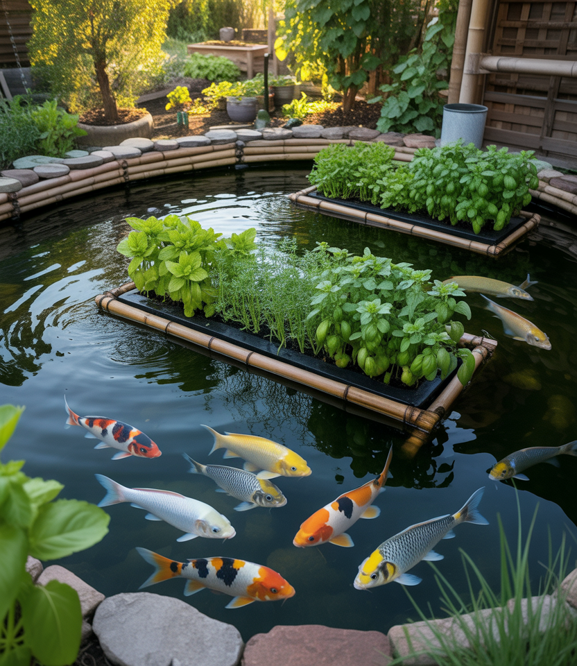 Combine sustainability with design by building an outdoor pond that doubles as an aquaponic system. The fish—such as small koi or tilapia—feed on plants growing on floating beds or nearby containers. Herbs and leafy greens flourish from natural nutrients. It’s eco-friendly, self-sustaining, and perfect for homeowners who love the mix of garden beauty and function.