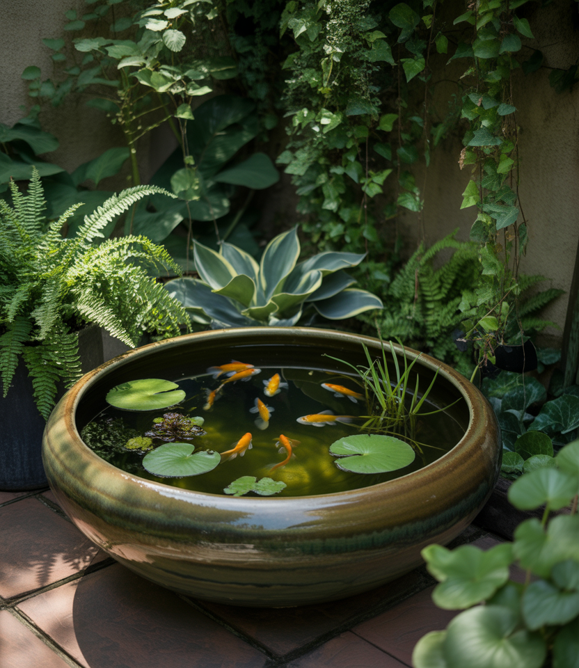 When space is tight, you don’t need to give up on water features—just scale smartly. A container pond (such as a large ceramic bowl or pre-formed liner) holds small fish or even a single beautiful koi and fits neatly into a small backyard or patio. Surrounded by lush planting, it adds movement and reflection without dominating the space. It’s also a wonderful way to introduce aquatic life into your garden, even if you start small and expand later.