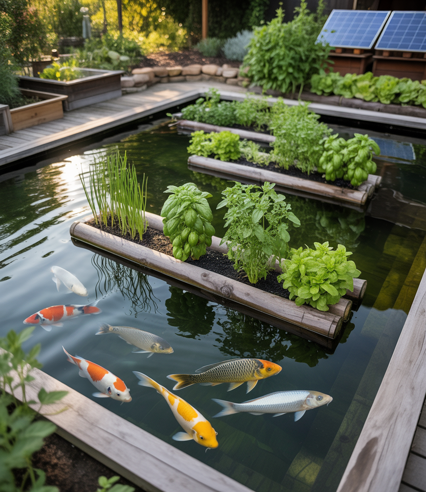 Combine sustainability with design by building an outdoor pond that doubles as an aquaponic system. The fish—such as small koi or tilapia—feed on plants growing on floating beds or nearby containers. Herbs and leafy greens flourish from natural nutrients. It’s eco-friendly, self-sustaining, and perfect for homeowners who love the mix of garden beauty and function.