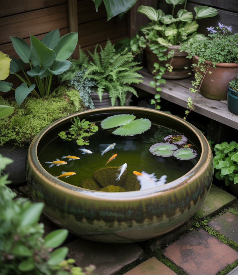 When space is tight, you don’t need to give up on water features—just scale smartly. A container pond (such as a large ceramic bowl or pre-formed liner) holds small fish or even a single beautiful koi and fits neatly into a small backyard or patio. Surrounded by lush planting, it adds movement and reflection without dominating the space. It’s also a wonderful way to introduce aquatic life into your garden, even if you start small and expand later.