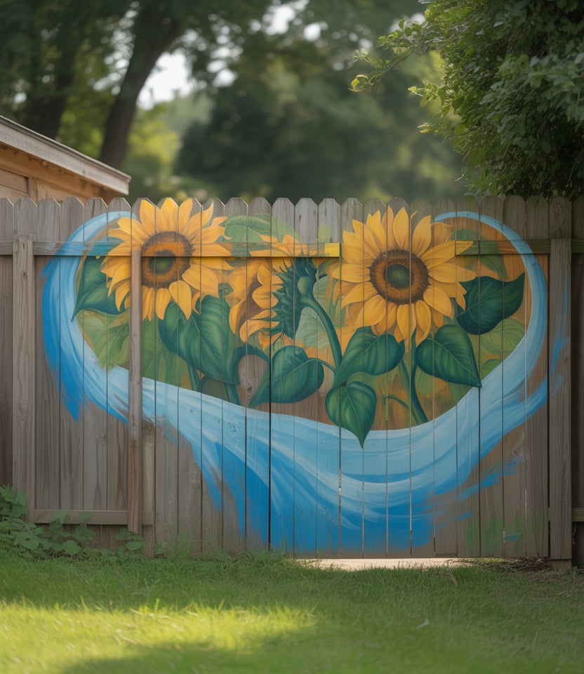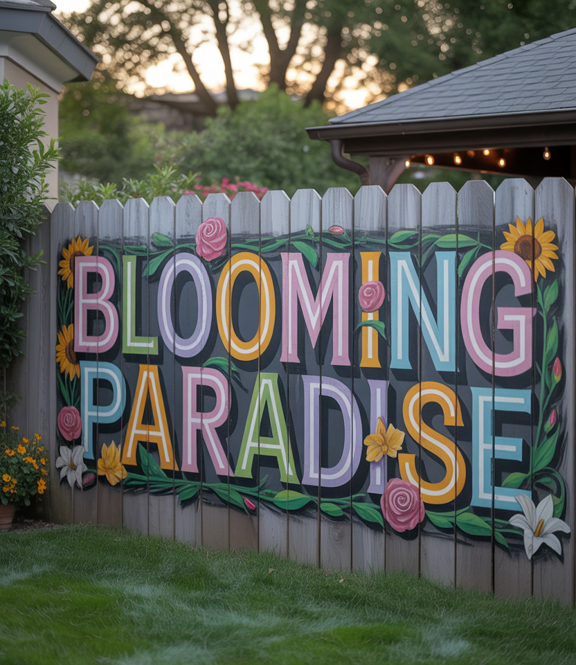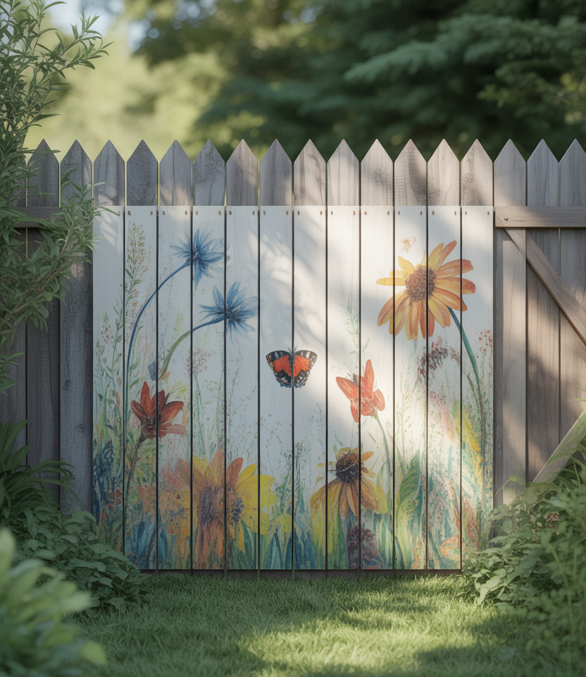 Turn a blank wall into art: paint murals or patterns on a fence surface. This is unique, on a budget (if DIY), and works for large properties or front yard areas. Use patterns, botanicals, or geometric design. Add climbing plants for softness.