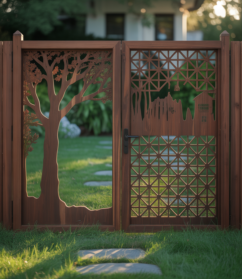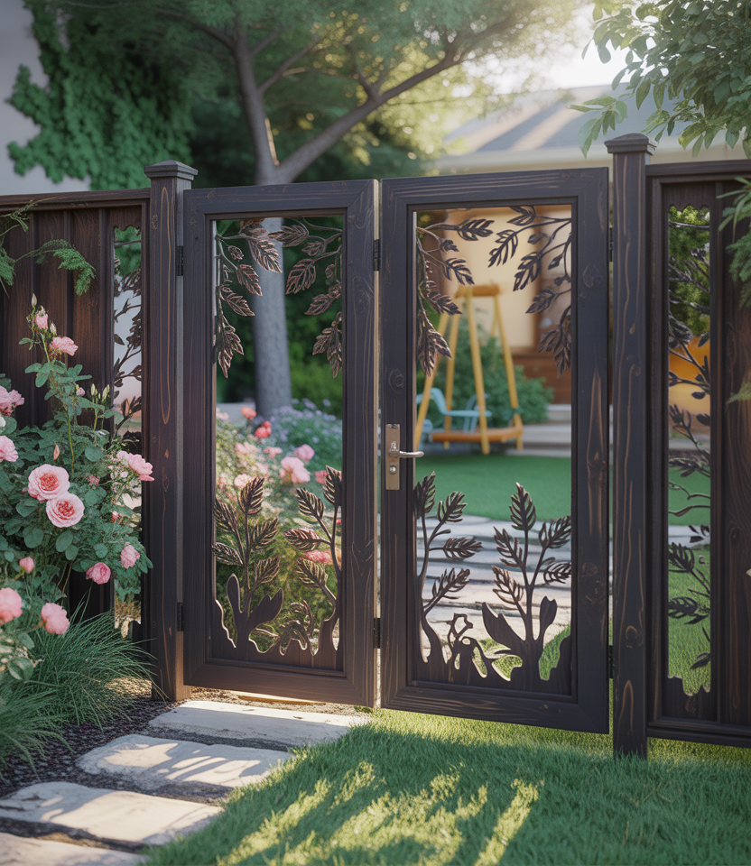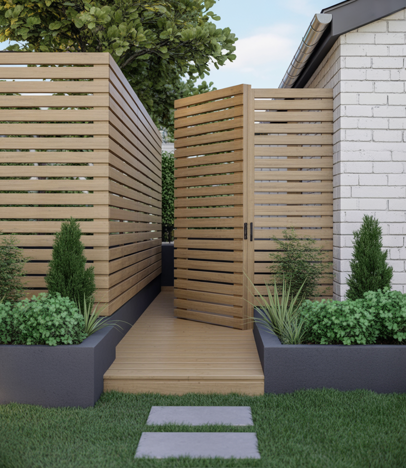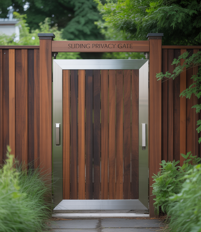 Blend the privacy fence with a gate ideas concept: sliding solid gates match your fence design for seamless entry. This is critical for large properties or any fenced yard needing access. Use matching materials so the gate doesn’t interrupt the visual flow.