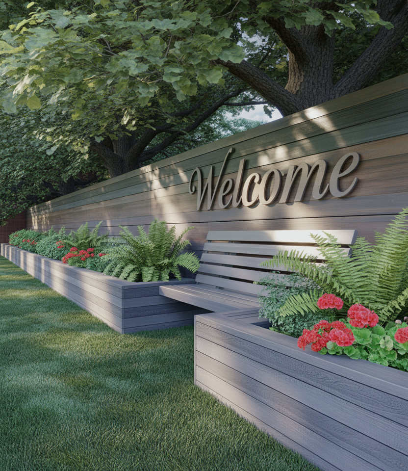 Fence with Integrated Seating & Planters