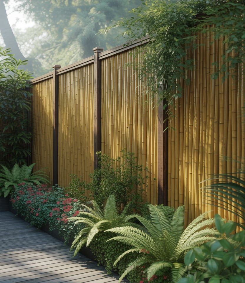A natural and eco-friendly bamboo screen imparts warm tones and moderate privacy. This is for patio, backyard, or small areas, and can be cost-efficient if you get the bamboo rolls or panels bundled. Bamboo can be paired with mesh or backing to enhance coverage. It weathers over time, softening into a calming patina.