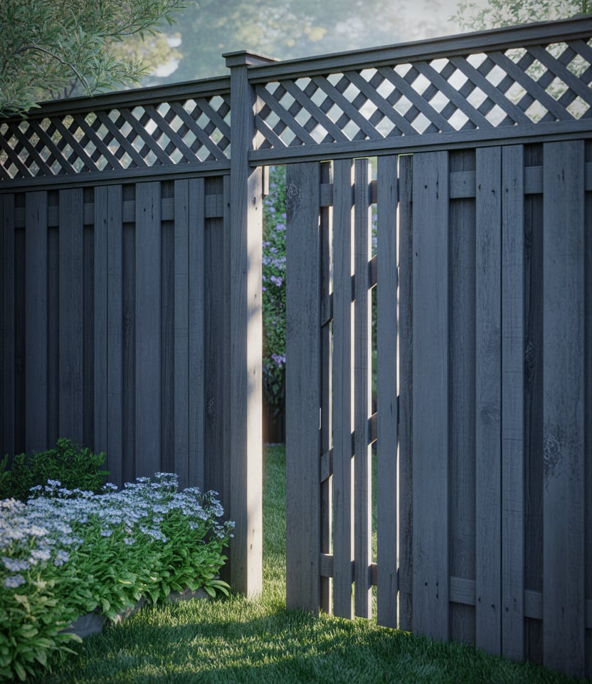Combine solid fence bottoms with open lattice tops to increase height without closing in light. Ideal around pool, for backyard, or front yard where full height might breach codes. The diy design is simple: install lattice panels above a sturdy base fence. Paint or stain white or black to match your style.