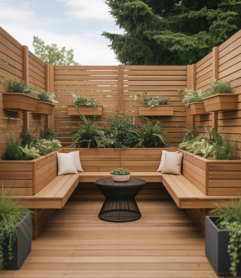Combine fence panels with built-in bench seating or planter boxes at the base. This multifunctional design is perfect for patio, for small areas, or for backyard lounging zones. Use wood, metal, or composite. It’s a diy challenge but offers maximum value.