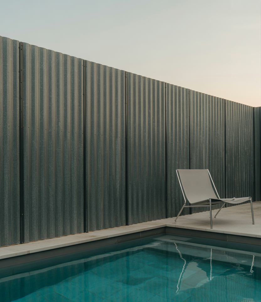 Corten steel takes on a beautiful rusted patina over time. This metal option is quite stylish and requires very little upkeep. Best for the modern backyard ideas, large properties, or well-made statement walls in the pool area. Panels or cutouts can be used for artistic touches. Although the initial cost won’t be the lowest, the durability makes up for low maintenance.
