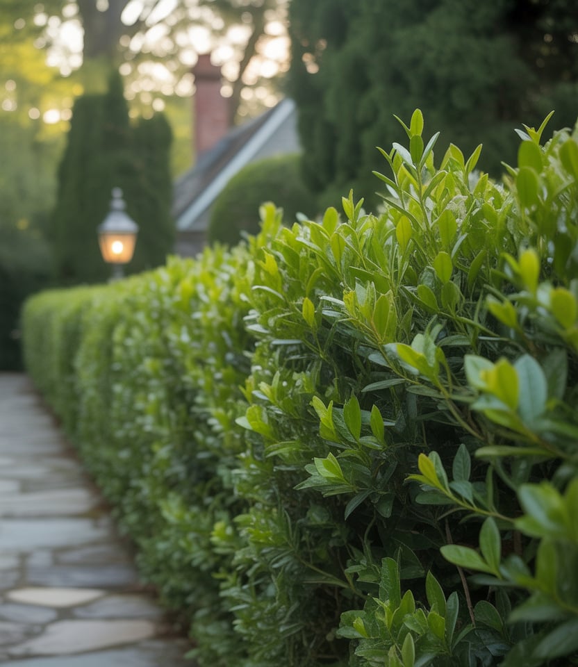 An old-school landscaping option: plant dense shrubs, hedges, or evergreens to form a wall of nature. Good for large properties or fronts. Relatively cheap over time (though early investment), and low-maintenance once matured. You may mix in wood or metal accents to trim or define.