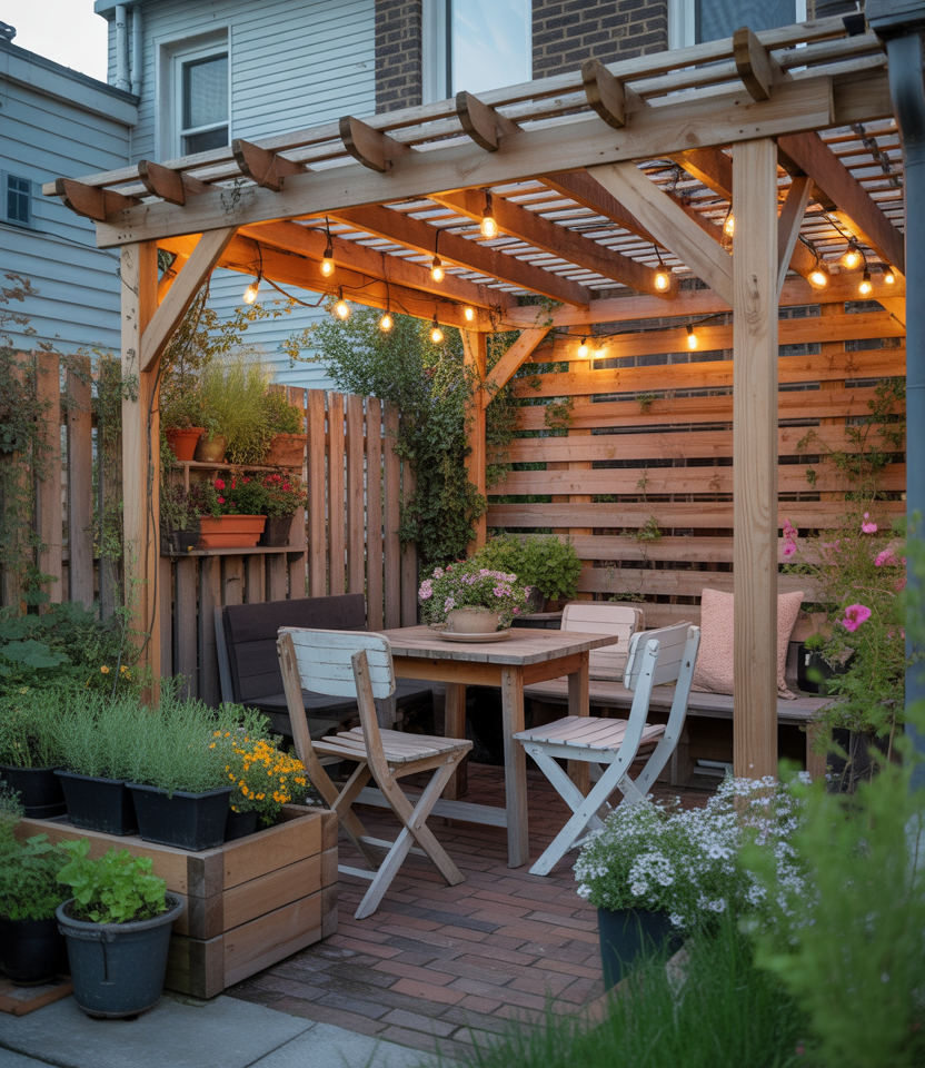 Even a balcony-sized yard can feel expansive with a micro deck crafted from modular wood panels—an easy, budget-friendly DIY project and a cheap favorite among city homeowners. Add a small bistro set, hanging lights, and a potted garden wall to create an instant outdoor room. I built mine over cracked concrete, and it’s now my morning coffee sanctuary. Compact yet inviting, this urban design fits beautifully with the 2026 trend toward flexible, renter-friendly living.