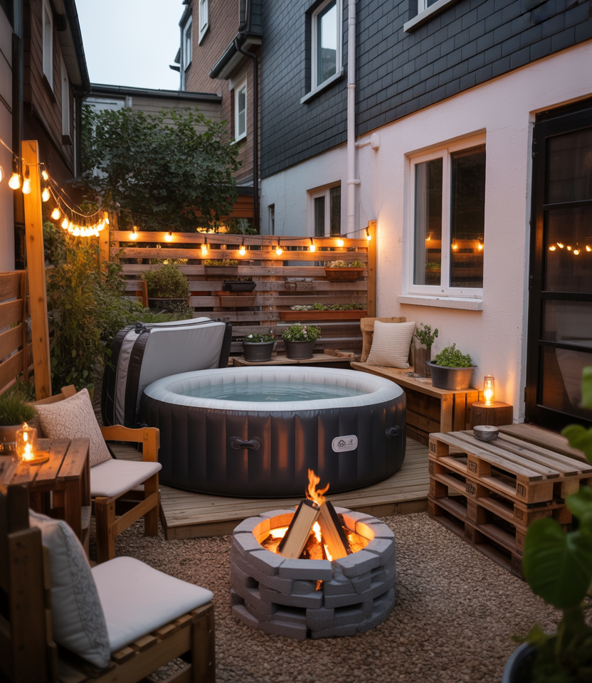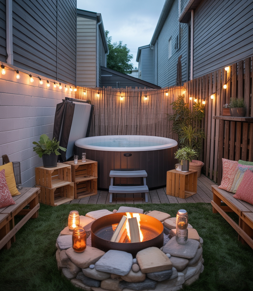 For homeowners craving luxury in limited space, combine a hot tub with a small fire pit area to create a super-relaxing spa corner. It’s surprisingly doable using a budget, easy DIY projects, and cheap techniques like reclaimed stone surrounds and solar lights. I saw this setup at a local design show—the warmth of fire meeting the calm of water was irresistible. This dual-feature backyard elevates evenings and gives townhouse yards resort-like appeal.