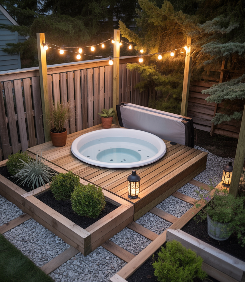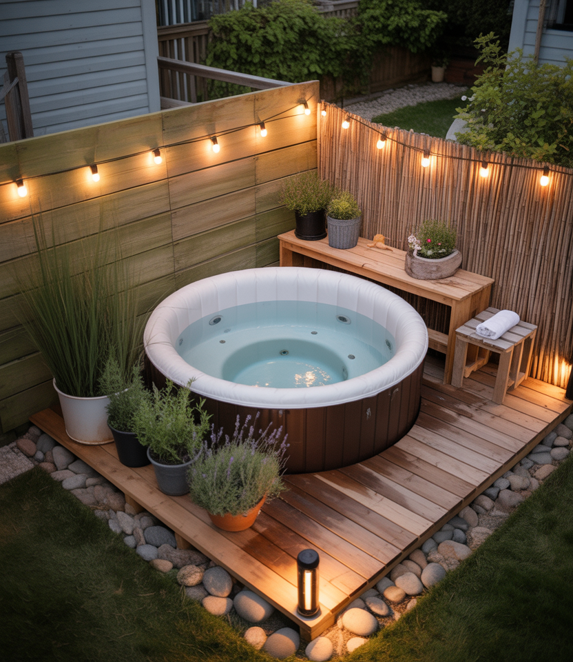 Even a small backyard can host a compact hot tub, turning your outdoor zone into a spa-like retreat. With a clever layout and a townhouse-friendly fence or wall for privacy, you can fit a small hot tub plus bench seating or planters for ambiance. I visited a friend’s small lot where they tucked a hot tub into a corner surrounded by bamboo screening and string lights—what a transformation from a forgotten backyard patch. It shows that with thoughtful design, even modest yards can feel luxurious.