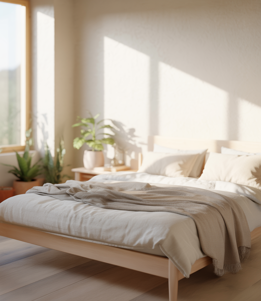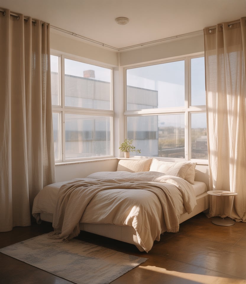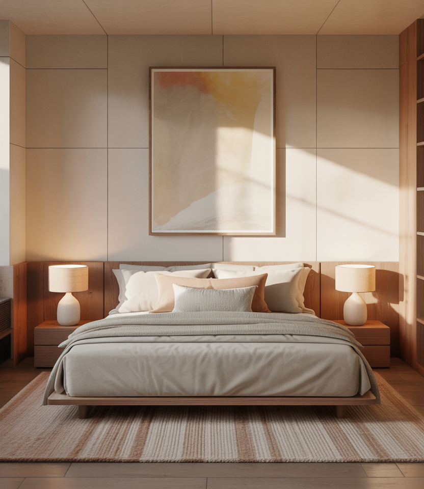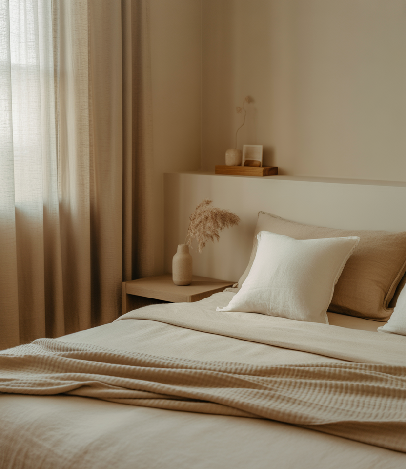 A layered neutral retreat works beautifully in compact rooms, especially when soft textures calm visual noise. Mixing warm woods with airy linens keeps the space grounded yet light. Adding details inspired by cozy aesthetics, a compact closet, or a slim TV shelf helps everything feel intentionally curated without overwhelming the footprint.