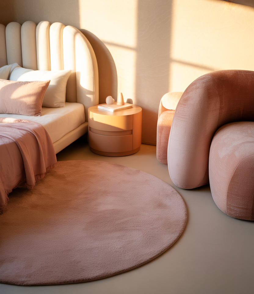 Curved lines—rounded nightstands, arched headboards—help soften tight bedrooms and improve movement. They work beautifully around a single bed or even a petite, super-plush rug. Add a whisper of pink or a simple aesthetic accent to keep the palette warm and inviting while maintaining visual ease.