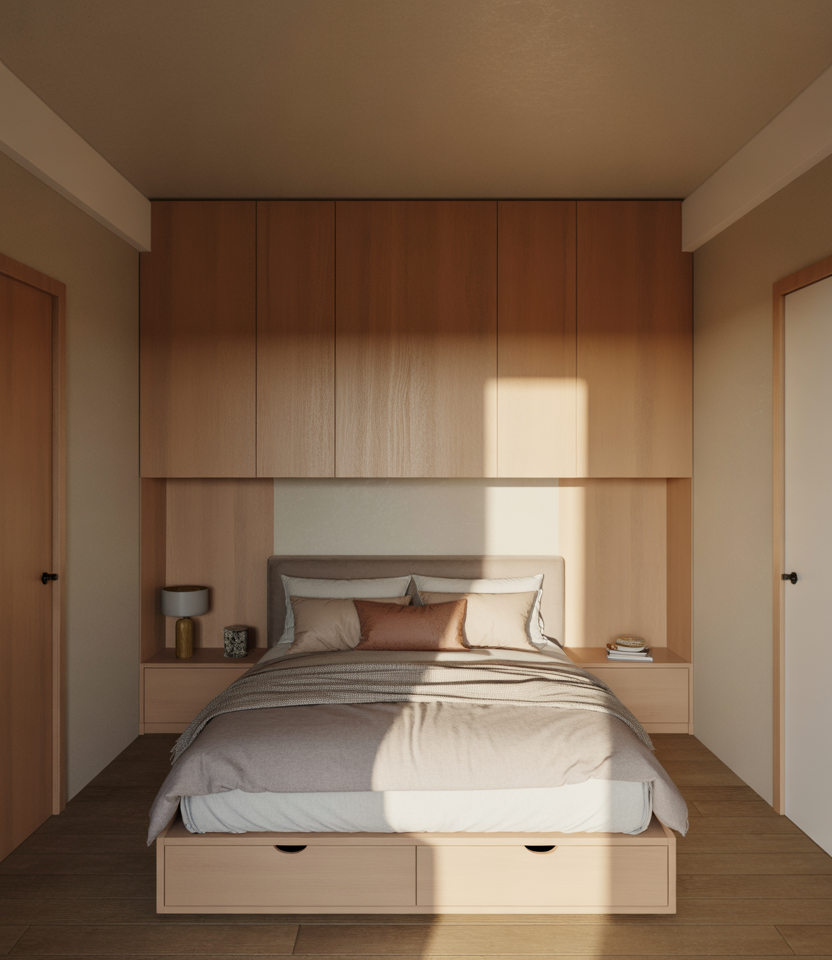 Maximizing under-bed space is a must in small rooms, especially when you want things neat without sacrificing style. A sleek frame with drawers gives you hidden storage while leaving the floor open. It suits shared spaces, a compact king-size bed alternative, or even a touch of Ikea practicality. Add gentle extra décor only where needed.